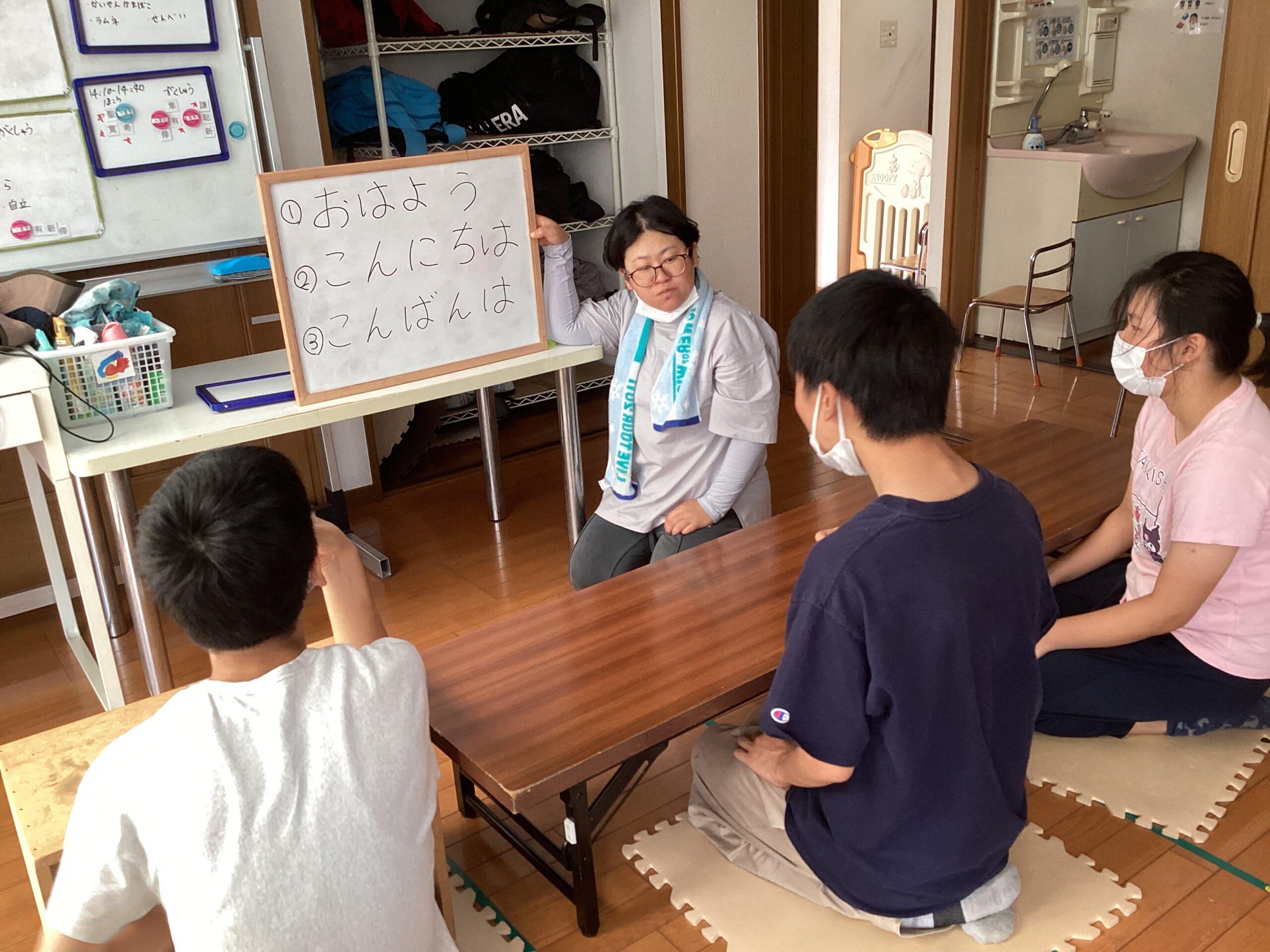 基礎を学ばせることで、「相手を見る・話を聞く・指示に応じる」ができるように指導しています。