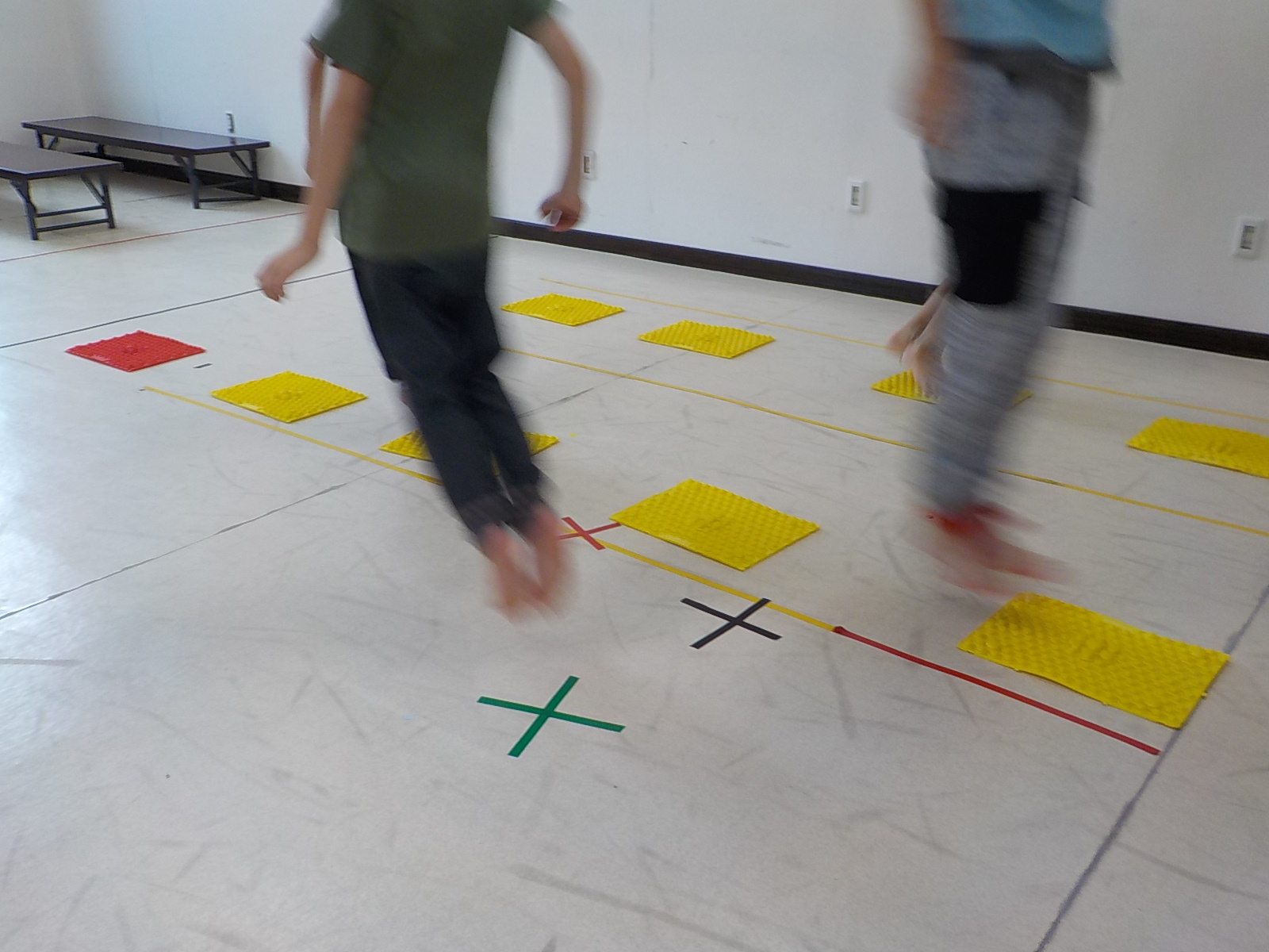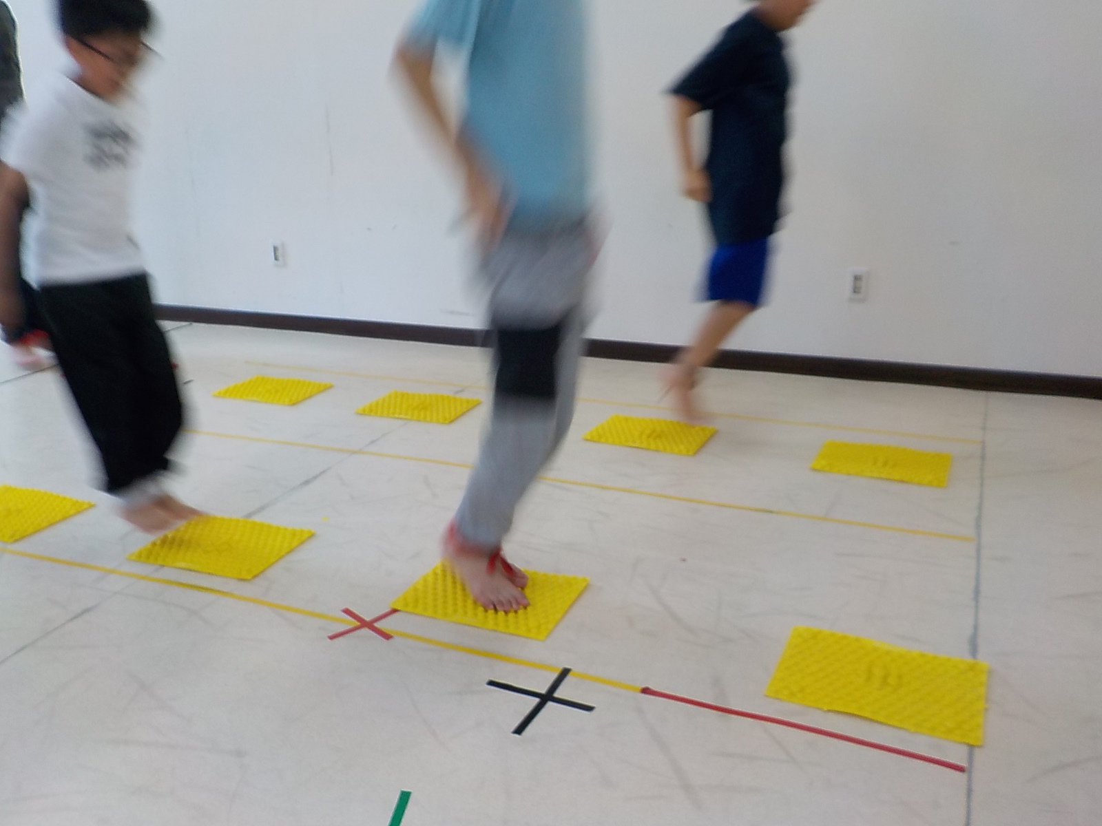 ドラゴンマットの一枚飛ばしで歩きと跳び、利き手ではない方の手で