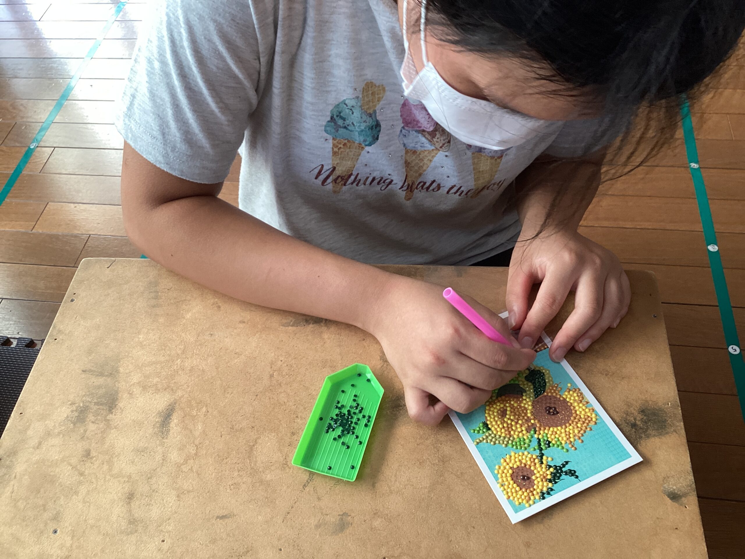 中学校のお姉さんはとても細かいビーズ作業にチャレンジ🎵集中していますね。