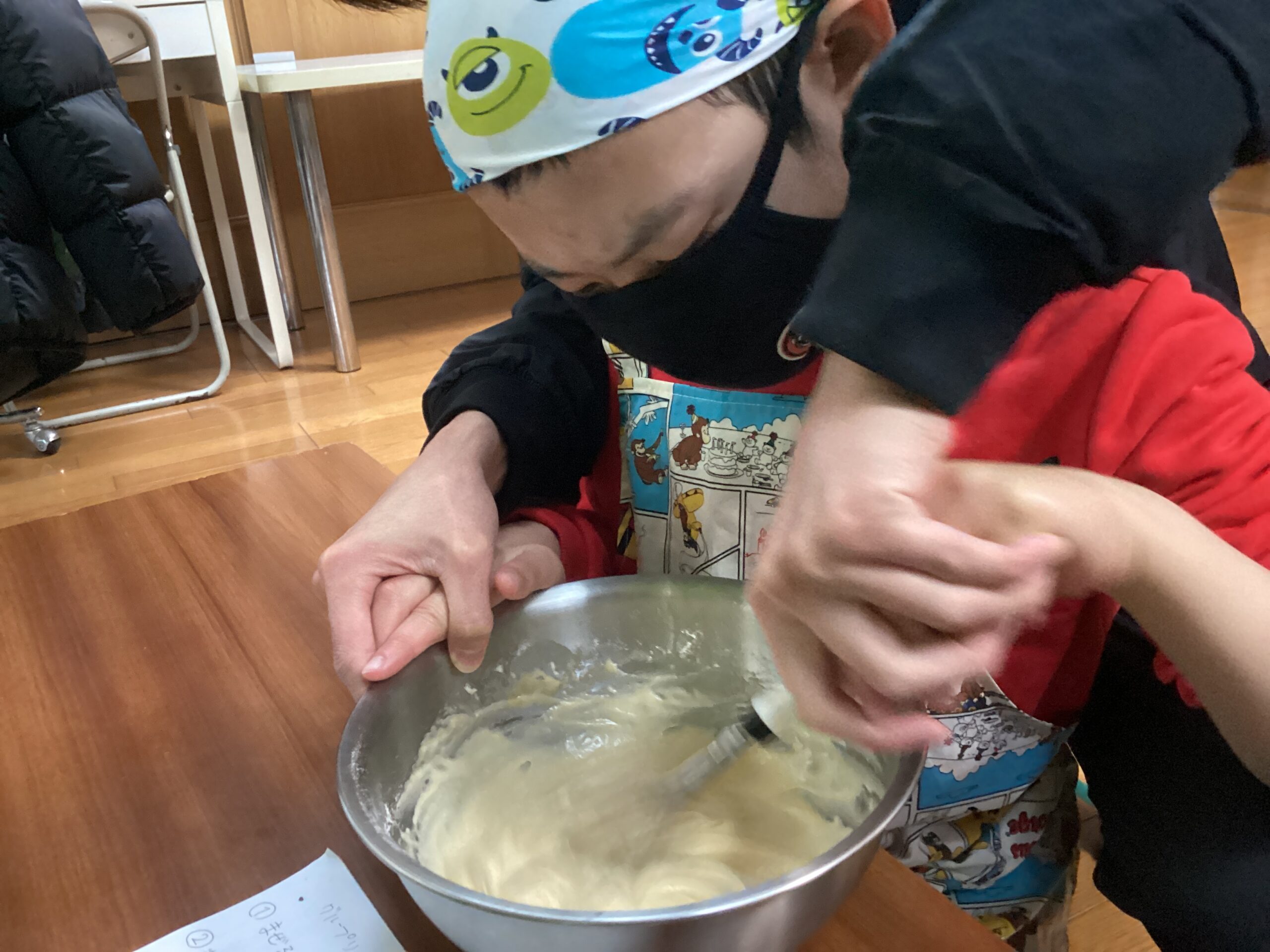 手順書を見て混ぜる・職員に手を添えてもらい掻き回すなどなど、吸収したい子供たちは成長が止まりません!