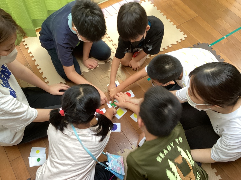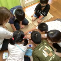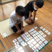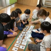 小学生高学年は3つのポイント確認早取りカードを行いました。 「よく見て聞いて!」 色・物・動物種類(3つ)を瞬時に聞き分け見分けて対照カードをとります。 ハヤトチリなどもあり、手を膝でじっくりと出題を聞いています! ・・ …